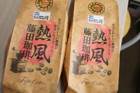 お客様用の珈琲が新しくなりますよ。藤田珈琲さんから取り寄せた「熱風」。