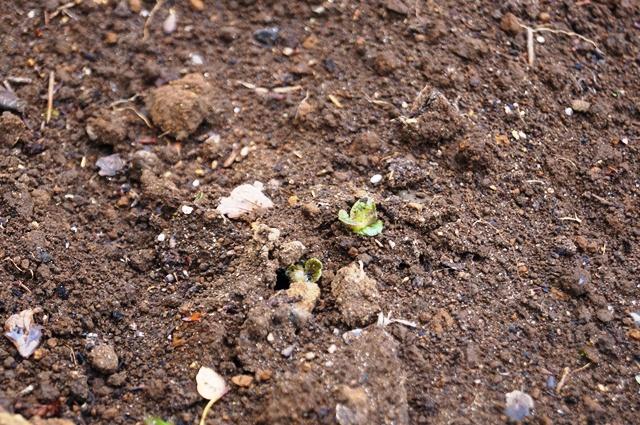 先々週植えたアクティブ菜園のジャガイモの芽が出たぁ!