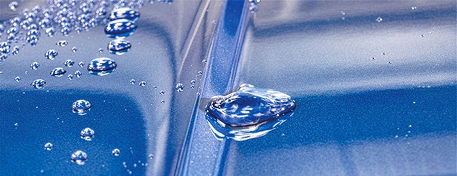 水滴が水玉のようになるのが特徴です。 水玉が転がるように流れるので汚れも付着しにくく、親水に比べコーティングの効果をより目で感じることができます。