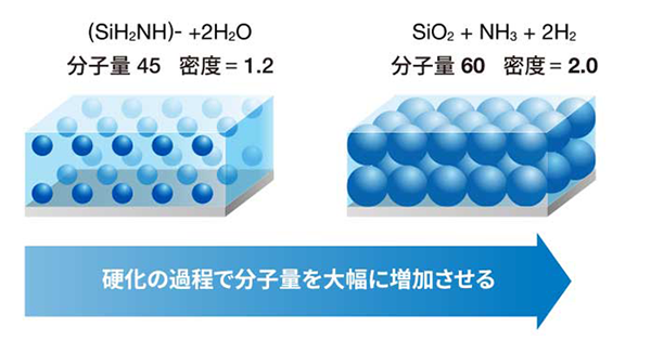 常温大気中で密度2.0のシリカ膜へ転化します。
