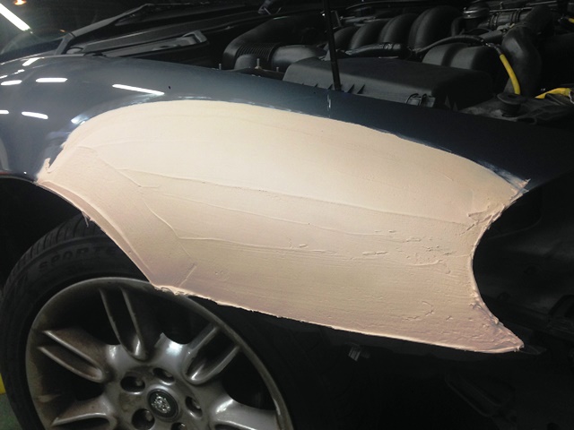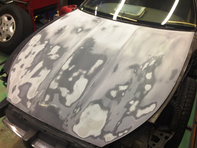 塗装前にはこのようにサフェーサーを塗布します